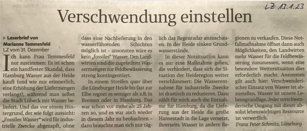 - Der Verein Unser Wasser appelliert an die Bürger – Aus der LZ vom 10.05.2023